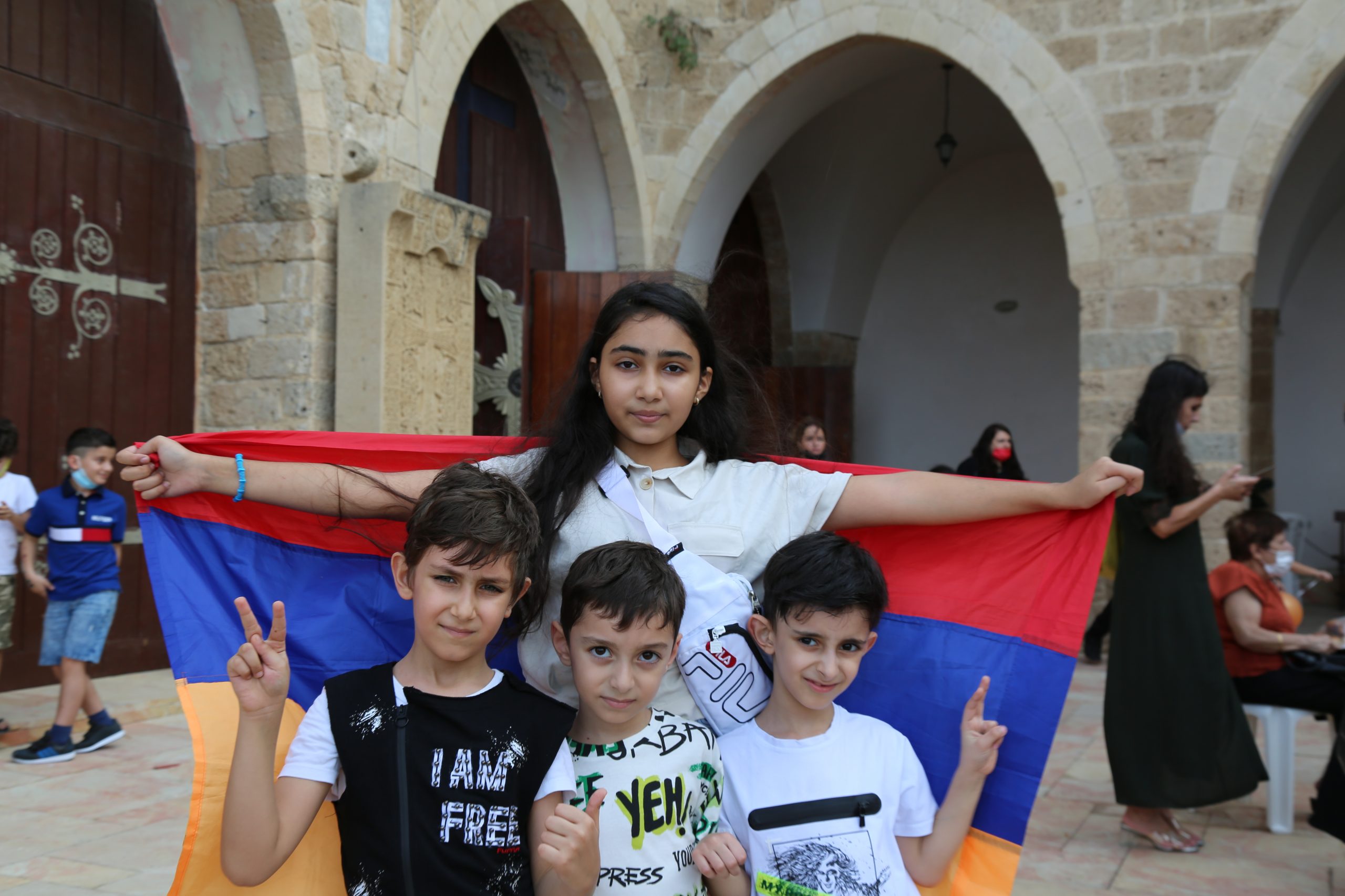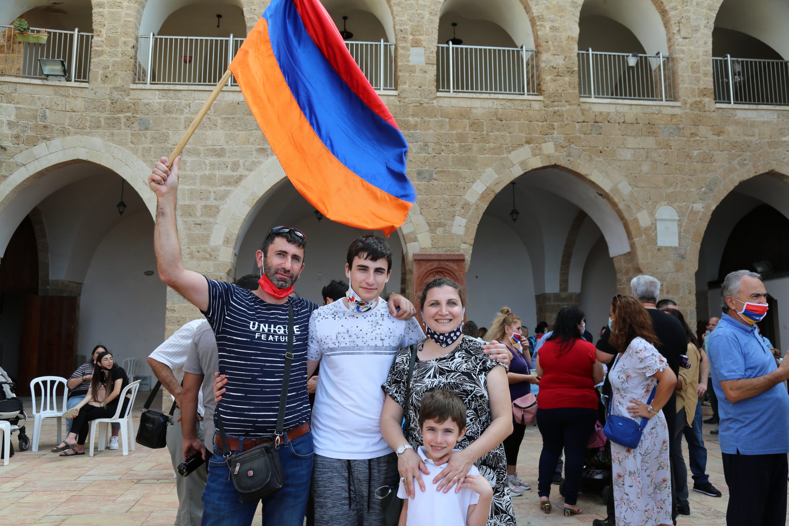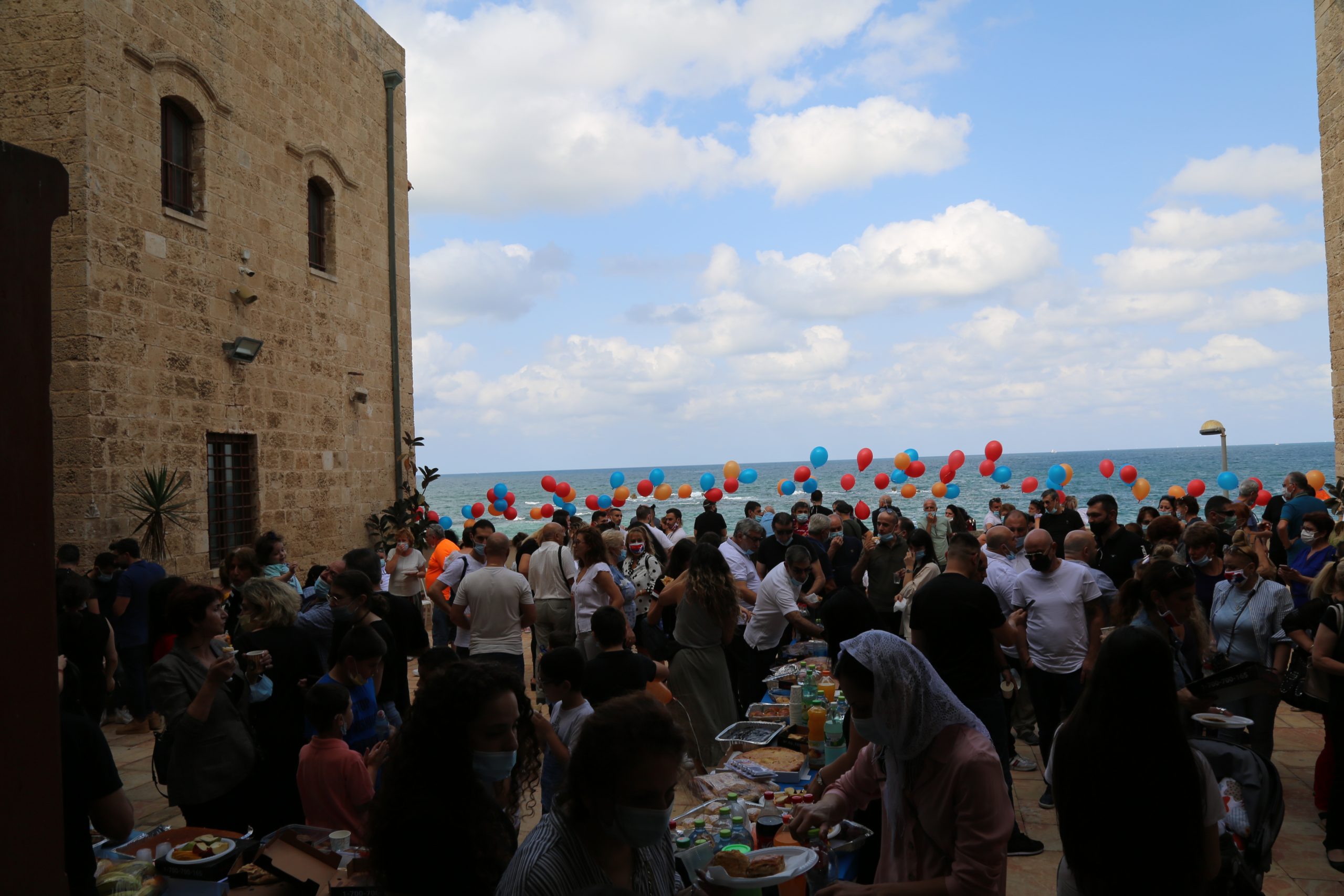 Իսրայելահայերը հայկական դրոշի գույնի փուչիկներ են օդ նետում` ի նշան խաղաղության