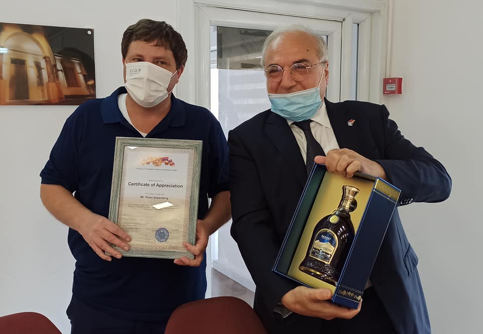 Լուսանկարում՝ ՀՀ արտակարգ և լիազոր դեսպան Արմեն Սմբատյանն և Պետախ Տիկվայի քաղաքապետ Ռամի Գրինբերգը