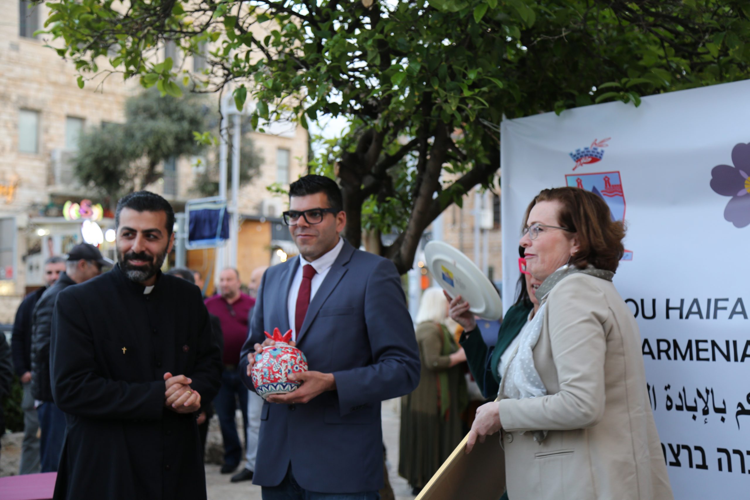 Ելույթներ ունեցան Հայֆայի հայկական համայնքի անունից Հ.Մ.Ը.Մ.֊ի ատենապետ Երեմ Լափաջյանը։ Ելույթներն ամփոփեց Հայֆայի ու Հյուսիսային քաղաքների հոգևոր հովիվ Տեր Տիրայր քահանա Հովակիմյանը։ Հոգևոր հովիվը ներկայացրեց համատեղ իրականացրած աշխատանքներն ու քաղաքային ավագանու անդամ Նիռ Շովեռի հետ իրենց հանդիպումների մասին պատմեց: Նիռն այնքան էր տարվել այս գաղափարով, որ Հայֆայի քաղաքապետարանում նրան արդեն Նիռ Շովեռյան են անվանում:
