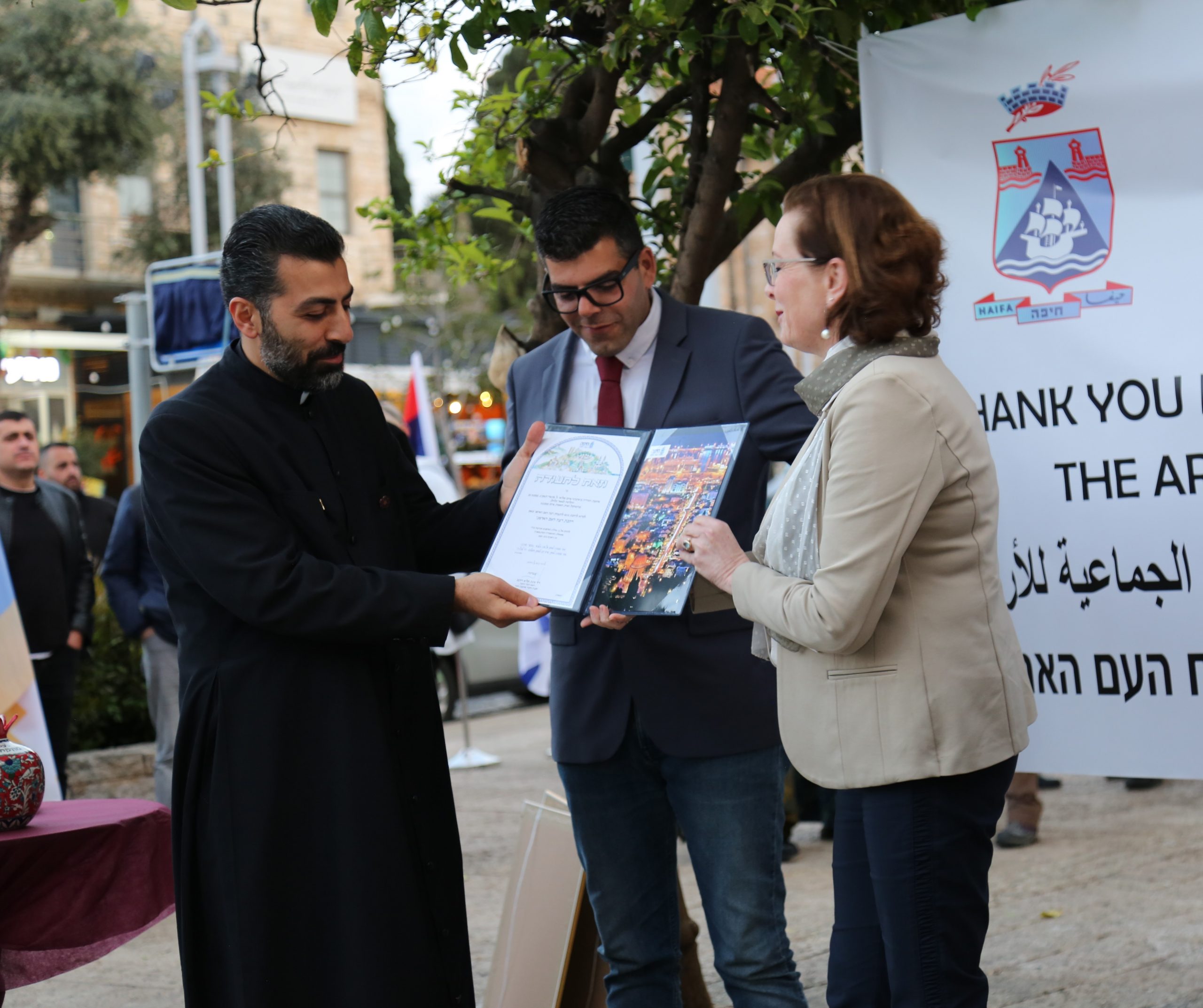 Բացմանը ներկա էին Հայֆայի քաղաքապետ Էյնատ Կալիշ֊Ռոտեմն, Իսրայելում ՀՀ արտակարգ և լիազոր դեսպան Արման Հակոբյանն, Երուսաղեմի Հայոց Պատրիարքարանի պատվիրակությունը Հայր Կորյուն վարդապետ Բաղդասարյանի ու Հայր Աղան Գոչյանի մասնակցությամբ, «Մերեց» կուսակցության նախկին պատգամավոր Մոսի Ռազը, Հայֆայի բոլոր կրոնական հարանվանությունների ներկայացուցիչներն ու Իսրայելի տարբեր շրջանների հայկական համայնքների ներկայացուցիչներ։ Ավելի քան 350 հյուրեր էին հավաքվել այս գեղեցիկ արարողությանը՝ մասնակից դառնալու, որն ավելի քան 2 ժամ տևեց։ Քաղաքապետարանի կողմից երեկոն վարեց քաղաքապետարանի միջոցառումների բաժնի ղեկավար Էլիռան Տալը:
